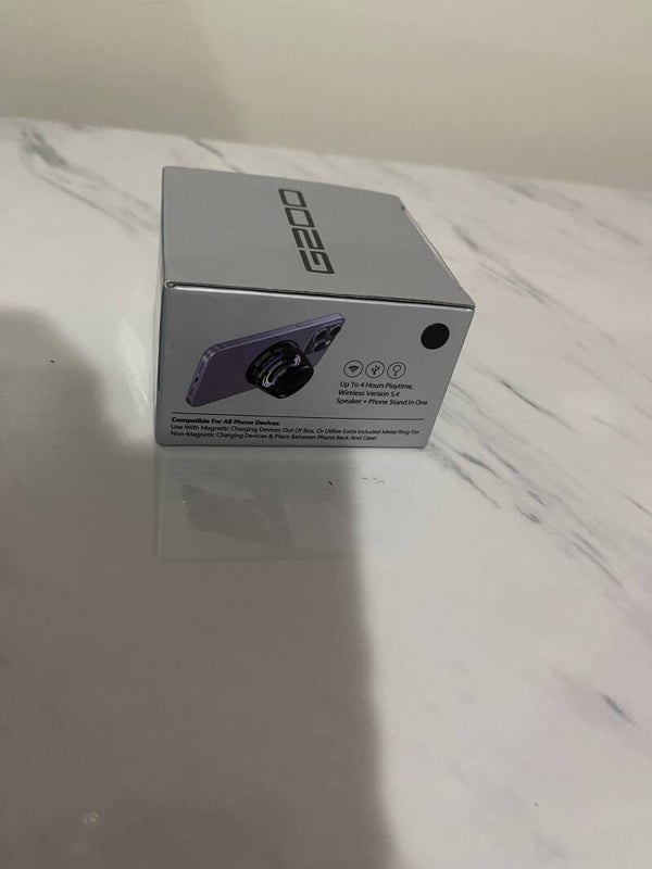 Up to 4 hours playtime, speaker and phone stand in one, magnetizes to metal surfaces.